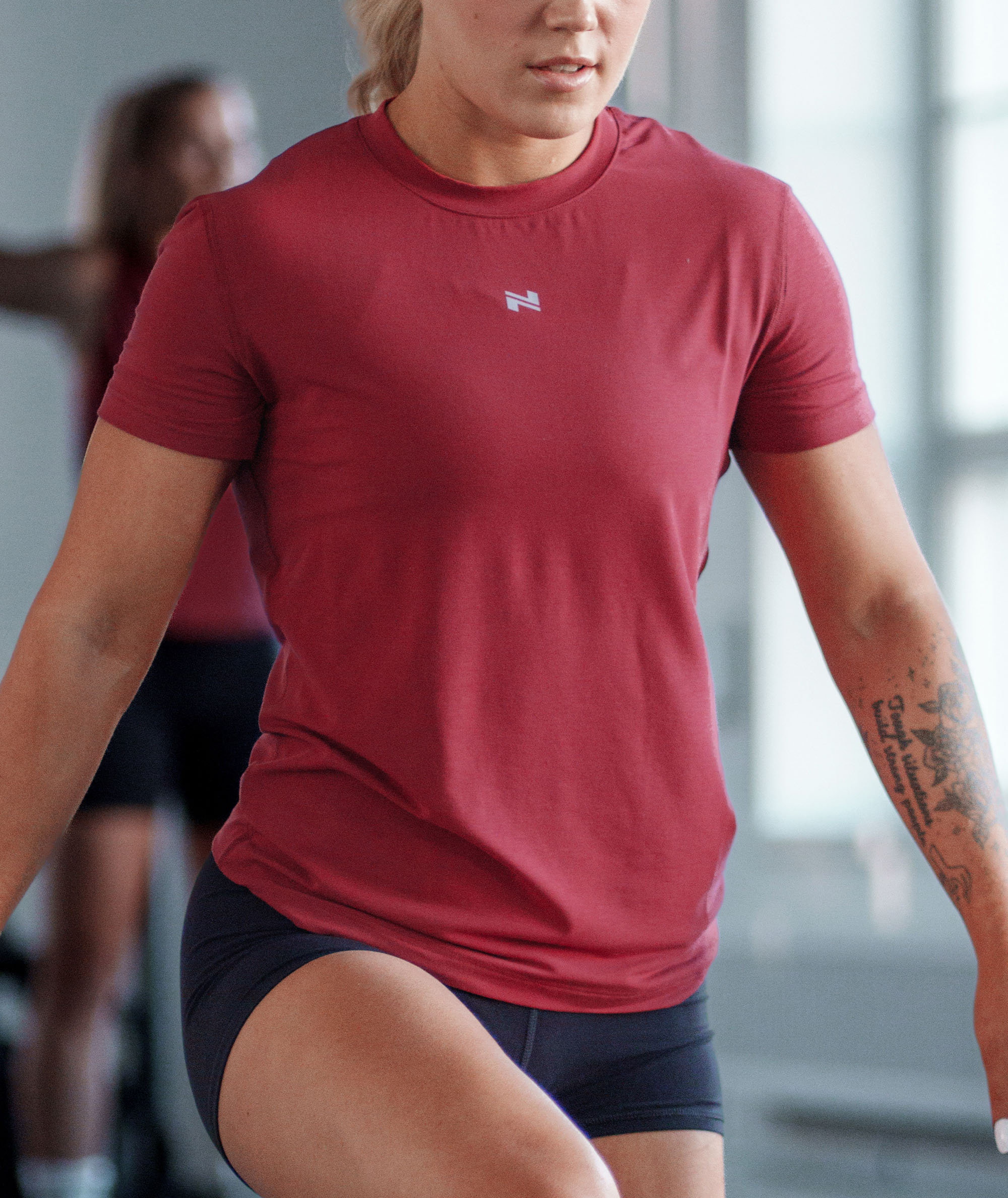 women's training tee, Model 167 cm / size S#color_garnet-red