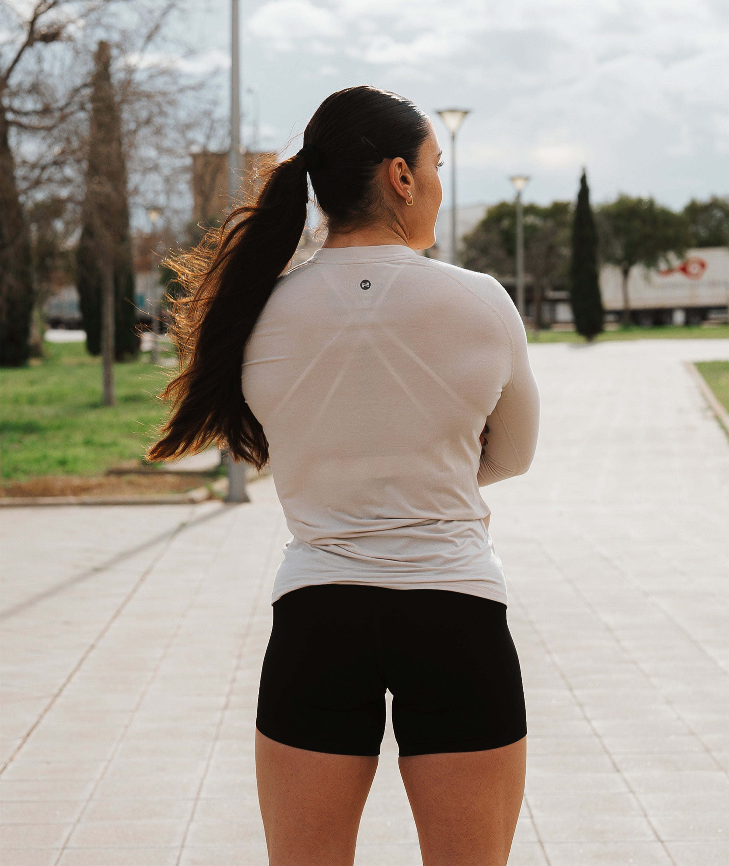 A form-fitting design with long, fitted sleeves. The soft and lightweight material is highly stretchy, and the shirt doesn’t pinch or feel tight anywhere.